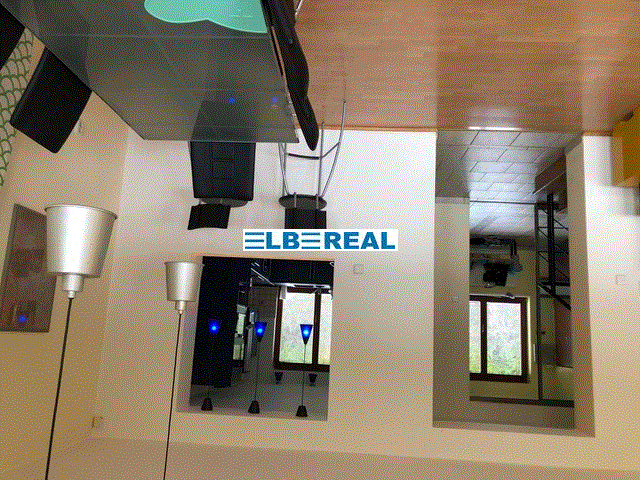 (KL v tvare L so zabudovanými spotrebičmi a krásnym výhľadom von) a pohľadovo prepojená s obývačkou + jedálňou s výstupom na terasu/záhradu. Z prízemia vedie schodisko do uzamykateľného suterénu a garsónky (štúdia) a tiež schodisko na vyššie podlažie;